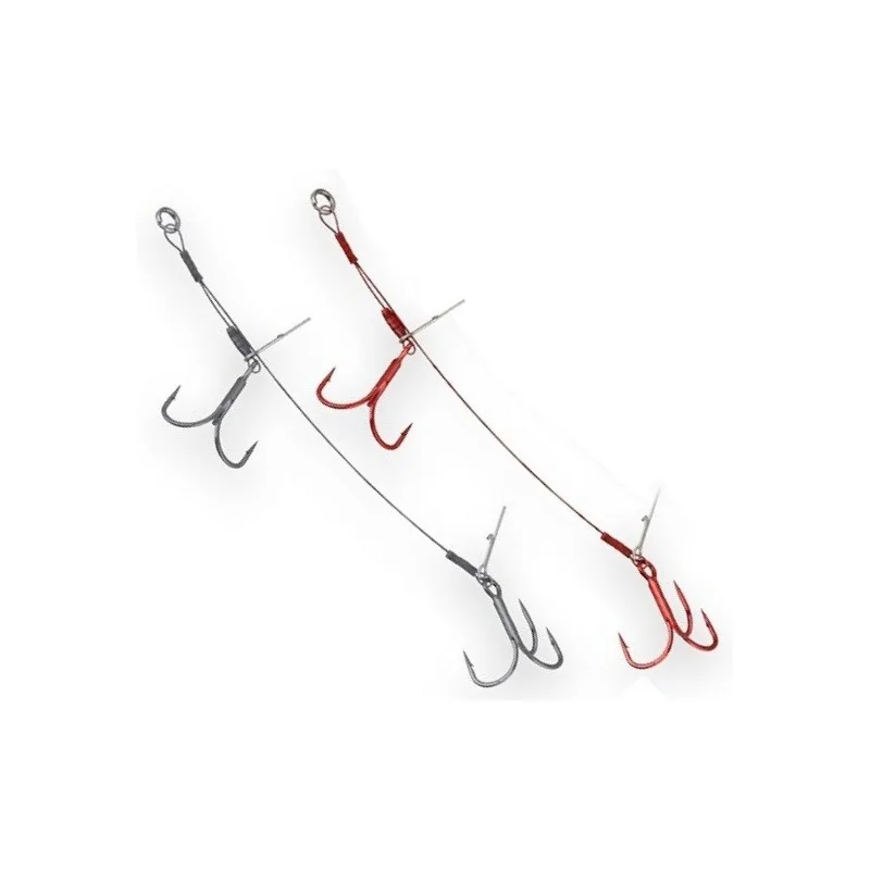 Podwójne dozbrojki z kotwicami Savage Gear Y, z doskonale zaciśniętym materiałem Coated Carbon49. 1 szt. w kolorze Gunsmoke i 1 szt. w kolorze krwisto czerwonym w opakowaniu. Pętla posiada silikonową rurkę, pozwalającą na zamontowanie dozbrojki ponad oczkiem główki jiggowej.