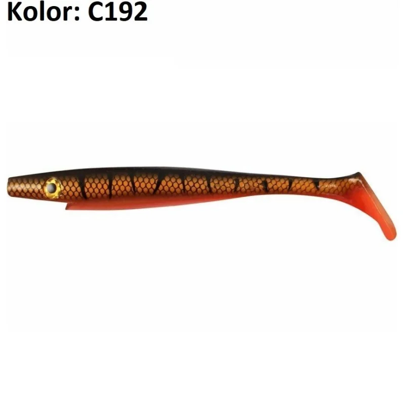 Pig Shad JR. ma uwodzicielską pracę korpusu, który delikatnie „toczy” się , podczas gdy głowa przynęty kołysze się z boku na bok. Ogon skręca się z niewielką częstością. Idealna imitacja zranionej rybki, która wolnymi ruchami porusza się ostatkiem sił i szuka wytchnienia. Doskonale nadaje się do stosowania z główkami jigowymi czy systemikami szczupakowymi uzbrojonymi w główki Flexhead.