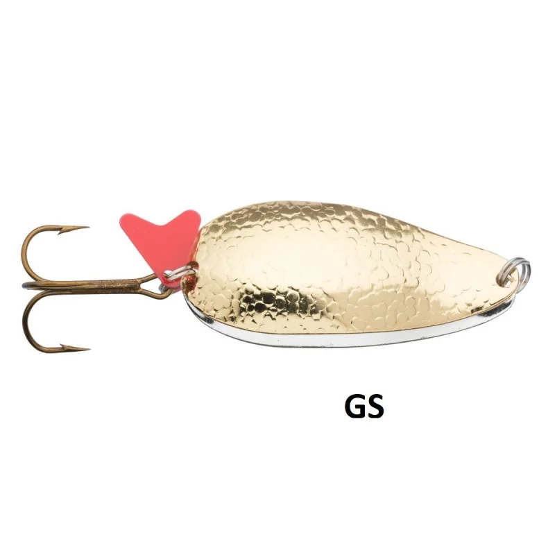 Błystka wahadłowa firmy Jaxon, zbudowana z podwójnej blachy w celu skuteczniejszego wabienia drapieżników .
