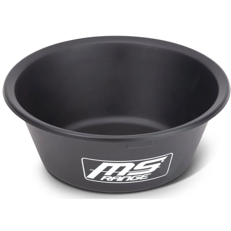 Okrągła miska na zanętę lub przynęte marki MS RANGE. Średnica (górna) miski to 24 cm, a wysokość 10 cm.