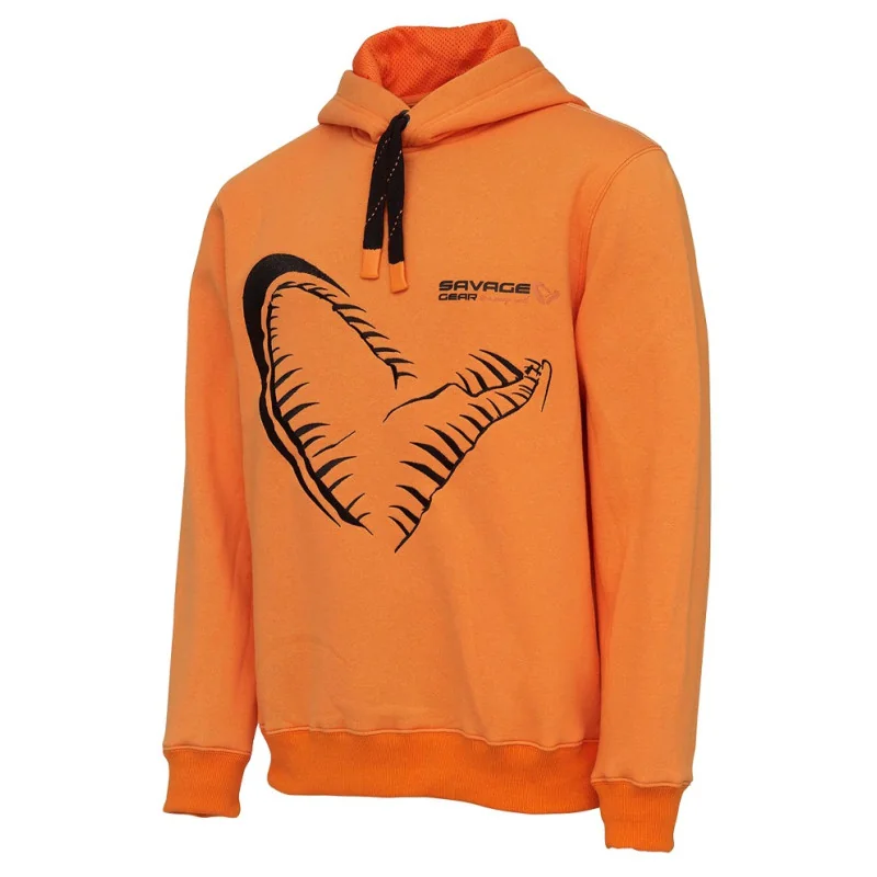 Bluza z kapturem Mega Jaw to wygodna i ciepła bluza w pomarańczowym kolorze. Solidne szycie i mocny materiał. Front bluzy zdobi wielki logotyp Savage Gear. Nieprzeciętne ubranie na duże branie.