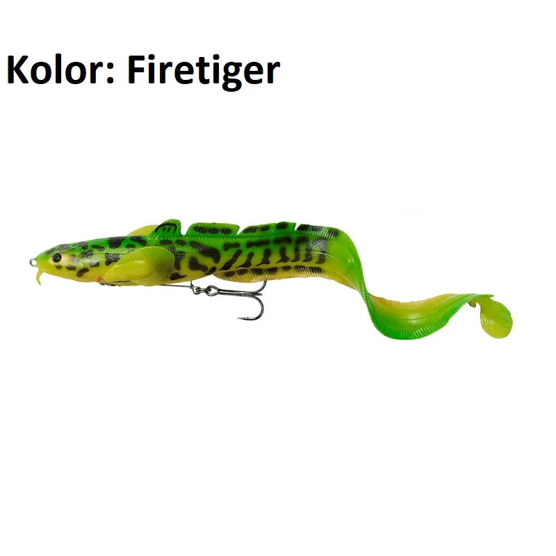 Niezwykle realistyczna imitacja miętusa, powstała na podstawie skanowania 3D prawdziwej ryby. Wersja do łowienia na płyciznach. Niesamowita śrubowa praca ogona, można łowić tę przynętą prowadząc ja niezwykle wolno. Jest wyważona do wyporności wolno tonącej, przez co płynie w czasie opadu z wolnymi wymachami ogona. Wewnętrzny korpus ma wbudowaną stalową grzechotkę, która wydaje głośne dźwięki w czasie twitchingu. Ogon w formie twistera posiada wbudowaną prowokującą, szklaną grzechotkę. Zbrojenie stanowi super ostra ktowica-Y zamocowana na ramieniu ze stali nierdzewnej.