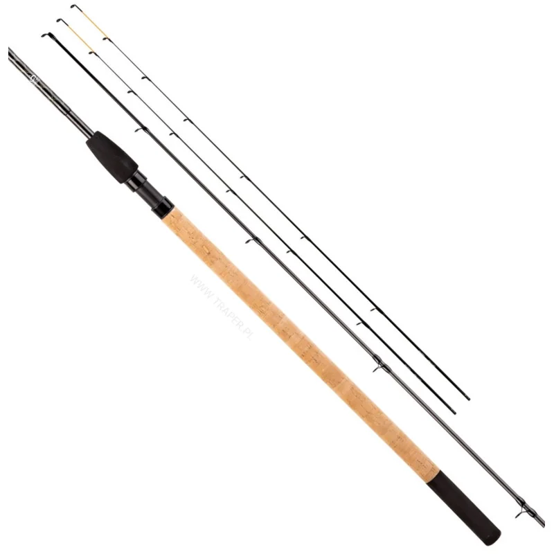 Ta wędka na feeder posiada przelotki typu SIC. Są one idealnie rozmieszczone co się przekłada na piękną akcję. Dolnik został wykonany z profilowanego korka, wykończony z obu stron pianką EVA. Solidny uchwyt kołowrotka WeBo DPS, to wytrzymałe tworzywa, dodatkowo wzmocnione pierścieniami z metalu. W komplecie dwie szczytówki.
