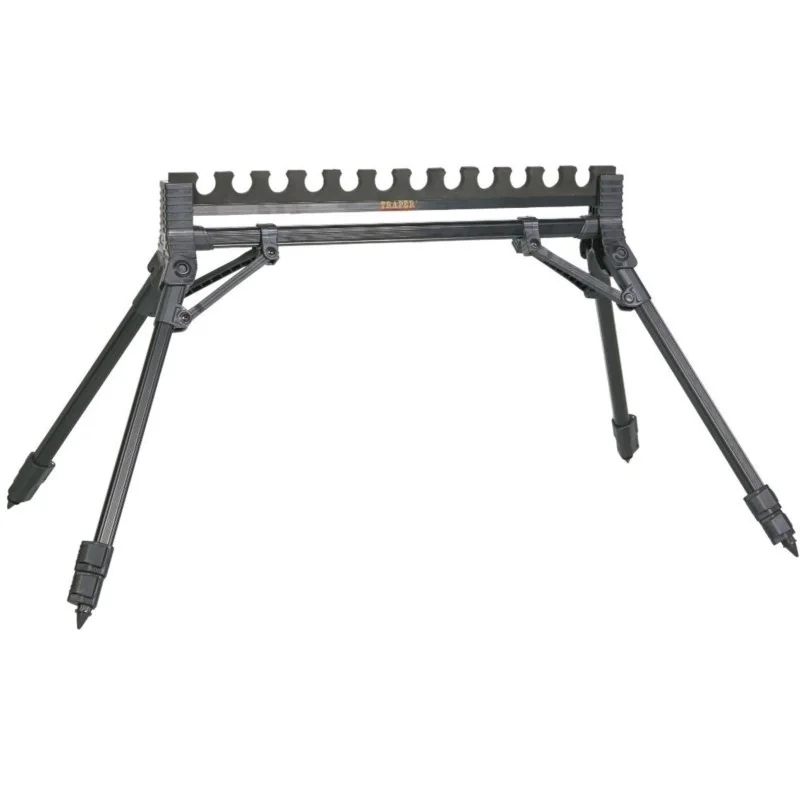 Podpórka Grang Prix do wędki i topów. Grzebień wykonany z miękkiej, doskonale amortyzującej pianki Eva. Stelaż z lekkiego aluminium. Nogi statywu zostały dodatkowo zabezpieczone przesuwnymi wspornikami, zapobiegającymi przypadkowemu złożeniu nóg. Bardzo łatwe i szybkie rozkładanie i składanie dzięki bocznym solidnym zaciskom z tworzywa. Rozsuwane nogi składają się z trzech elementów.