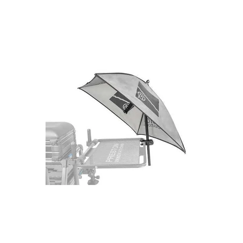 Parasolka Offbox36 to produkt do ochrony przynęty przed zacinającym deszczem i zacienienia przed palącym słońcem ze wspornikiem zaprojektowanym specjalnie do dopasowania do wielu istniejących tac bocznych Preston, dzięki czemu parasol możesz ustawić w dowolnym miejscu. Brolly ma mechanizm pochylania, a środkowy drążek można całkowicie wykręcić i ustawić w pozycji 45 stopni.