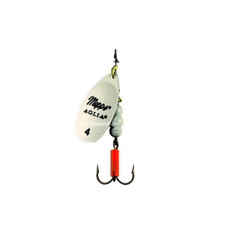 c) różowa -> na łososie i pstrągi mniejsze numery, nawet zerówka, bowiem prowadzona w poprzek nurtu lub z prądem bardzo udatnie naśladuje ikrę. Duże numeracje znakomite na szczupaki i sandacze z wody stojącej. Większe numery dobre do spinningowania w morzu, trafiają się trocie.