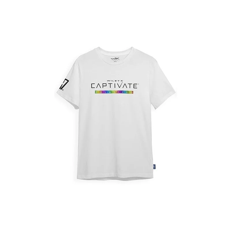 Koszulka WX Core Captivate to odzież z nastawieniem na pełen komfort noszenia dzięki zastosowaniu bawełny(100%) w kolorze białym. Front koszulki zdobi logo Wiley X, napis CAPTIVATE™ i nadruk foliowy o grafice w żywych kolorach z napisem "Polarized". Prawy rękaw to symbol "87" i rok założenia marki Wiley-X. Tył z przekazem "Go Confidently". Sportowa elegancja i wysokiej jakości wykonanie.