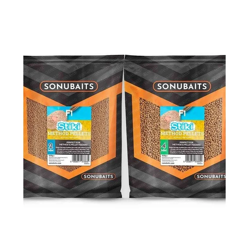 Pellety F1 Stiki Method Pellets zawierają wysoce przyswajalną mączkę rybną najwyższej jakości wraz z niewielką ilością oleju rybnego i F1 F1 Flavour, dzięki czemu są idealnym pelletem na każde komercyjne łowisko i dla wszystkich grubych ryb, zwłaszcza karpi F1 i odpieniaczy.